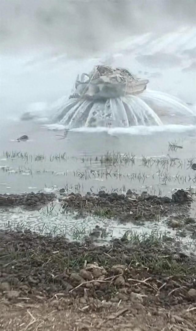 多位村民发布视频中,清澈的泉水,冒着热气,从地下不断喷涌而出,已将周围的农田淹没。许多村民在旁围观,有人还戏称“可以在这里洗澡”,也有村民称这里以前是老河道。